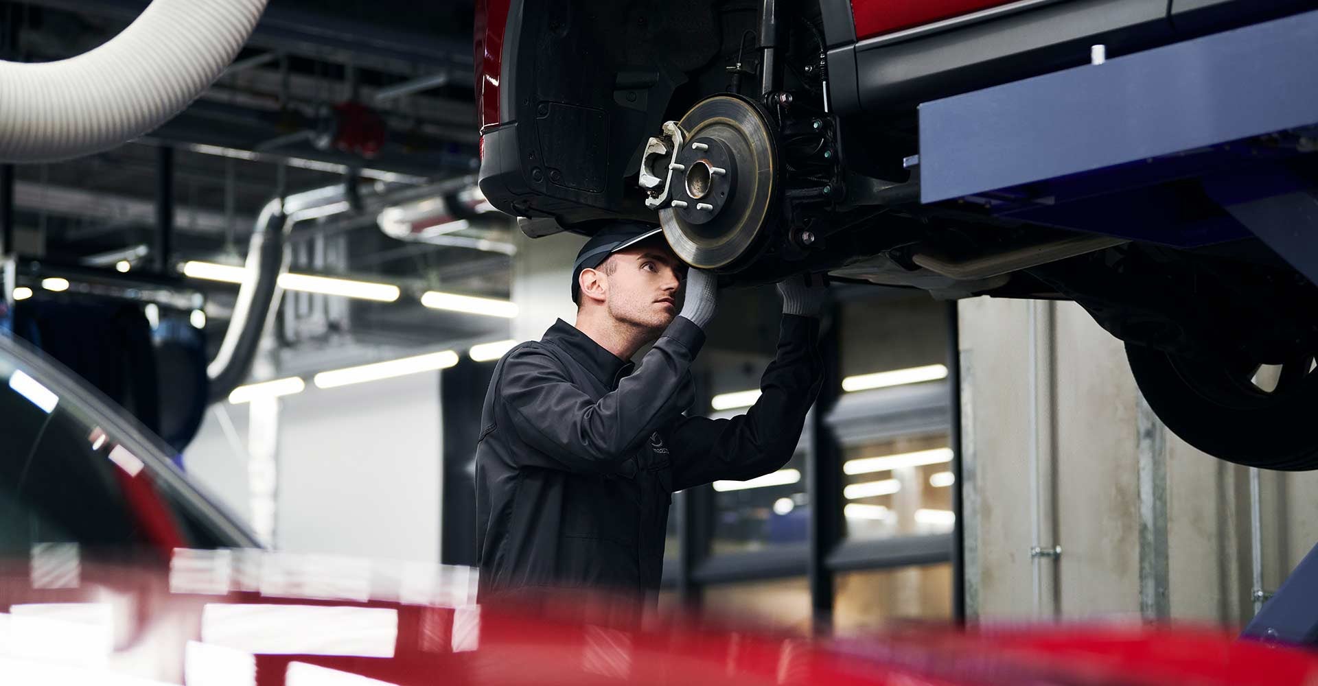 We place this task on our Mazda seasonal service guide because we want to check the wear rate of your brake pads and measure the brake fluid. This is an efficient way to monitor the brake system's life cycle and provide you extra peace of mind when coming to a stop.