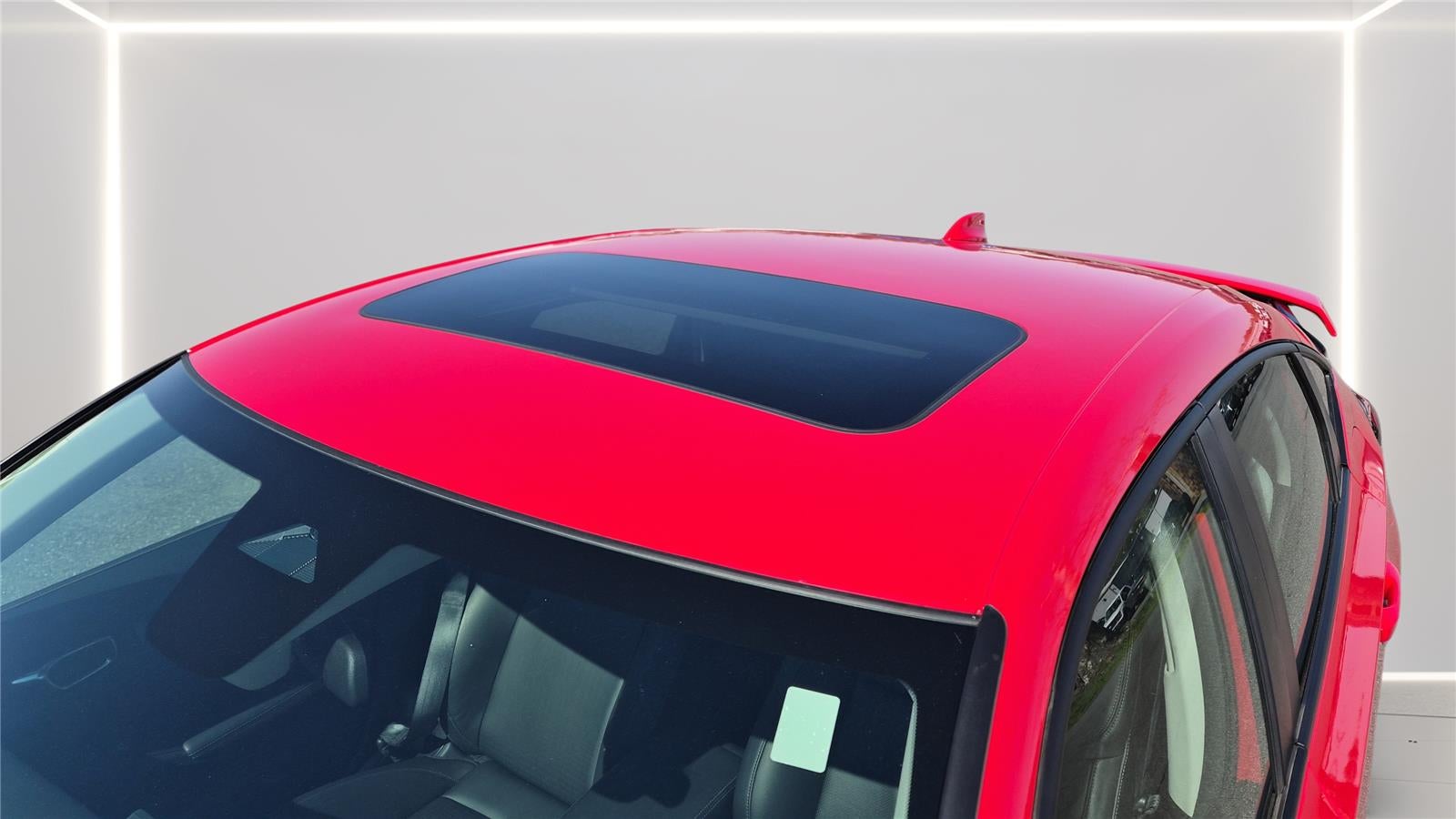 RALLYE RED, BLACK, LEATHER-TRIMMED SEATING SURFACES