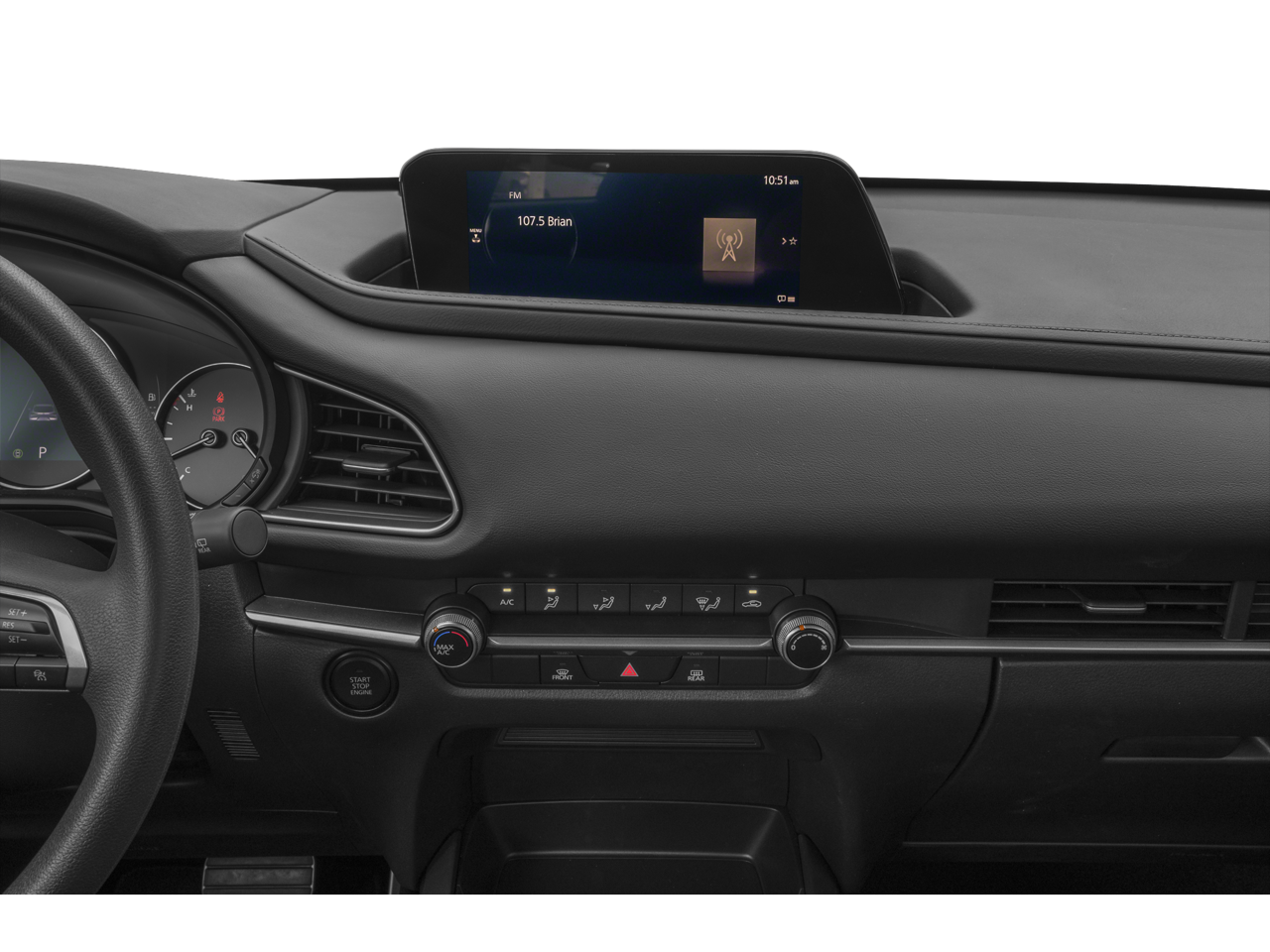- Radio: AM/FM Audio System -inc: 6-speakers w/Mazda Harmonic Acoustics, 8.8" full-color center display, Apple CarPlay/Android Auto integration (wired), Bluetooth® hands-free phone and audio capability, USB type-C audio inputs (2 ports) and steering wheel-mounted audio controls